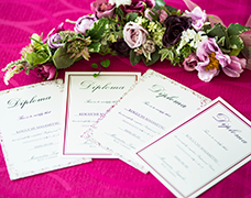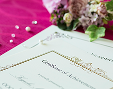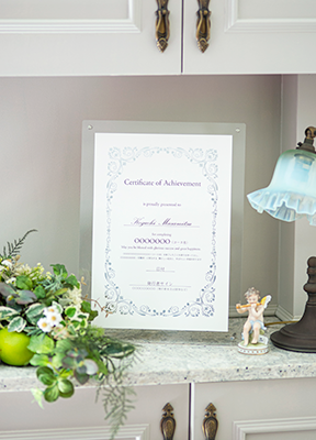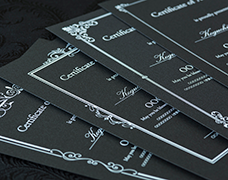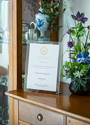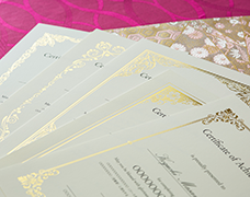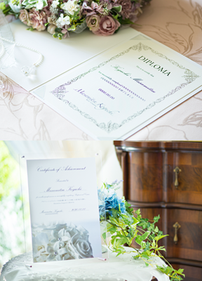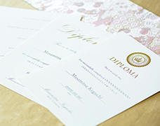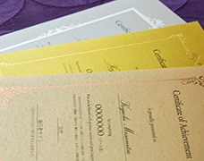 印刷業界での経験を活かし、紙の選定から印刷、箔押しなどの加工方法までこだわりあるディプロマを制作しています。