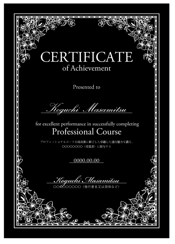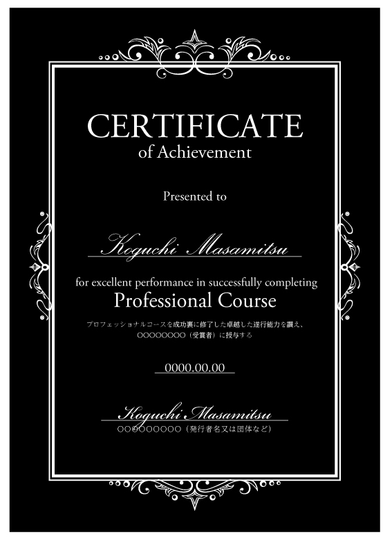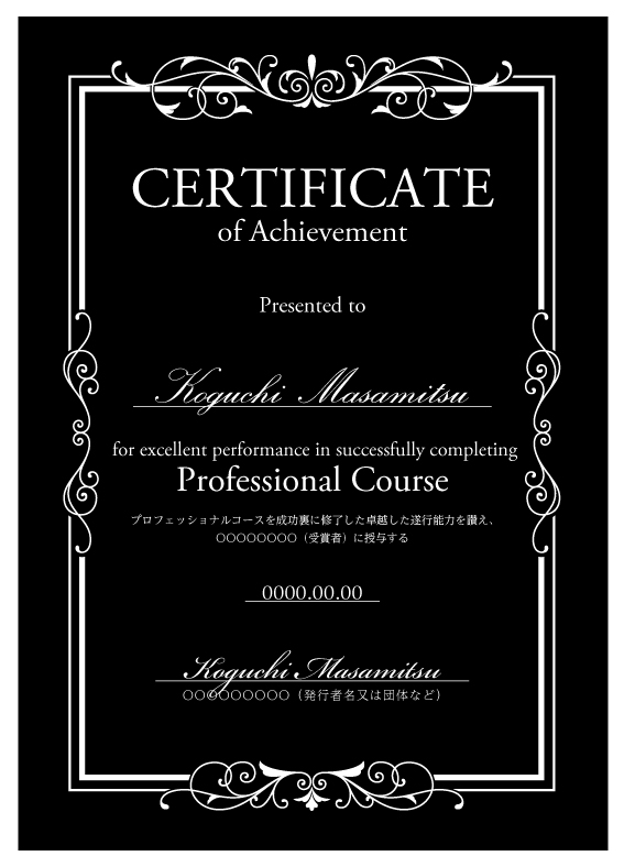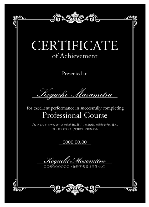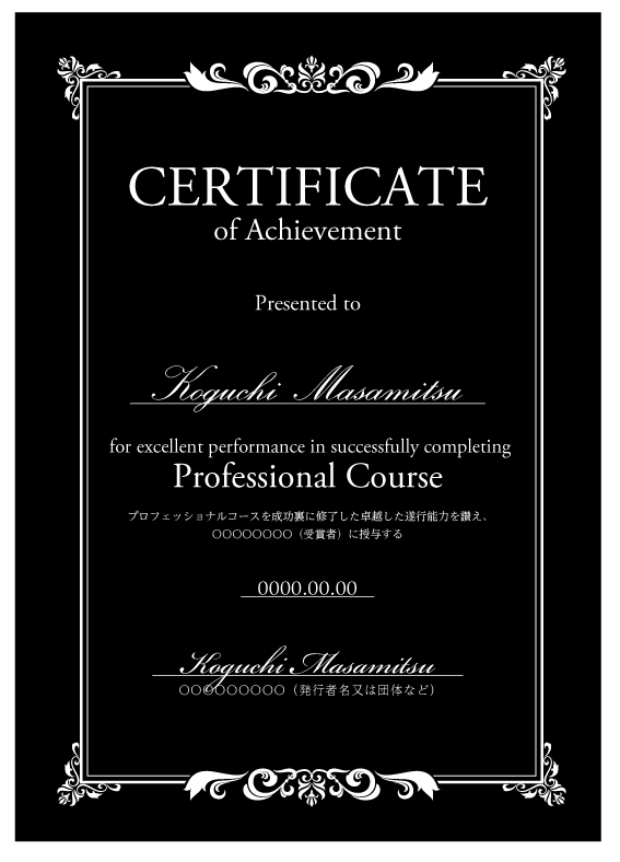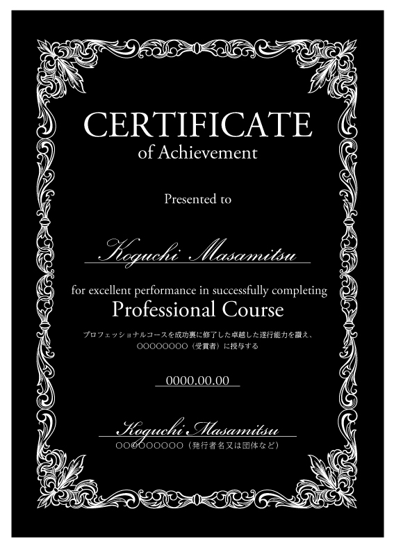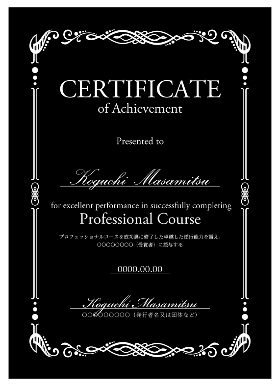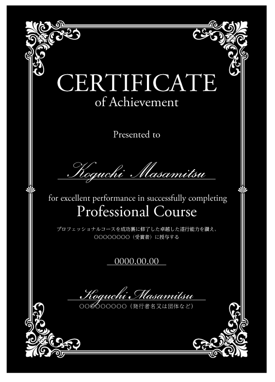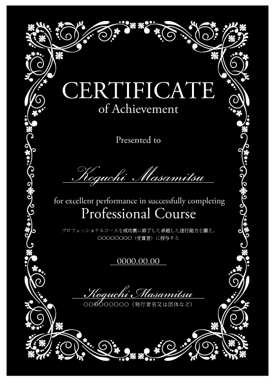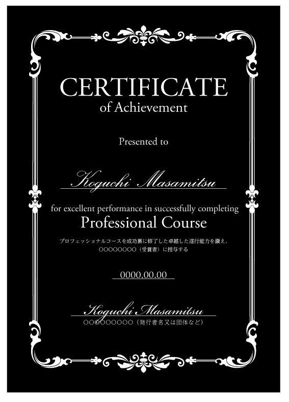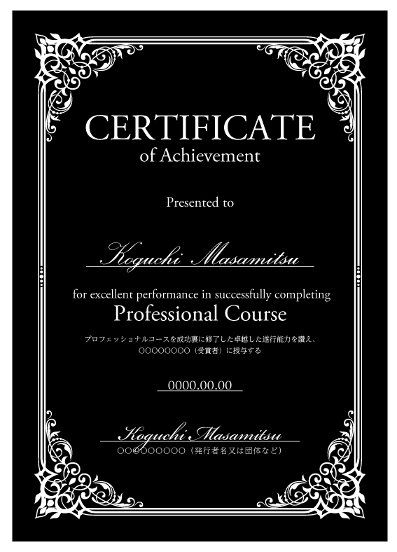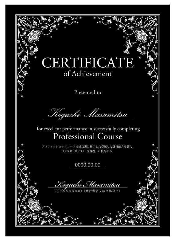 ディプロマへ受講者名、日付を印刷いたします。